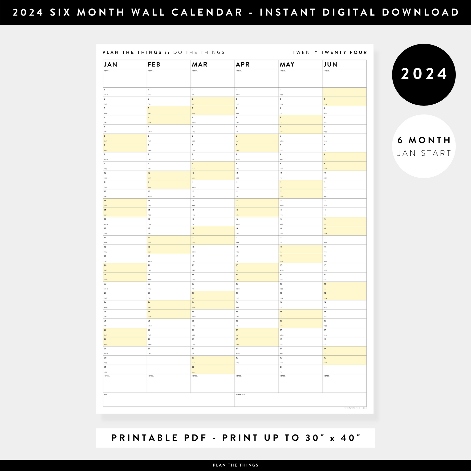 PRINTABLE 2024 SIX MONTH CALENDARS| JANUARY JUNE // INSTANT